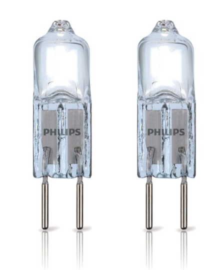 Philips Halogeen capsule met een G4 pin fitting geschikt voor armaturen met 12V. De lampen zijn dimbaar en direct op volledige lichtsterkte.