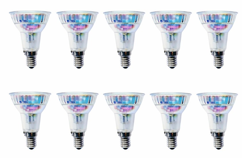 Een halogeenspot reflector met dunne E14 fitting en vermogen van 40W. De reflector is gemaakt van glas en is direct op volledige lichtsterkte. Deze PAR16 lamp heeft een diameter van 52 mm.