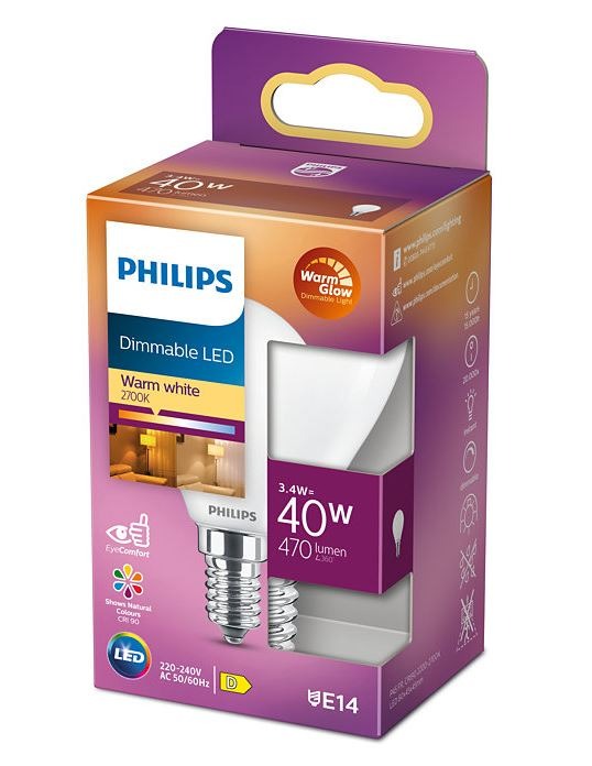 Dit is een kogel nieuwe LED lamp die de nieuwste LED-verlichting combineert met een traditionele glazen lamp. De lamp geeft mooi helder warm licht en is direct op volledige lichtsterkte. Deze LED lamp heeft een mat kleurig glas en is dimbaar. De LED lampen van Philips hebben een hoge kleurweergave-index, zodat voorwerpen hun natuurlijke kleuren behouden.