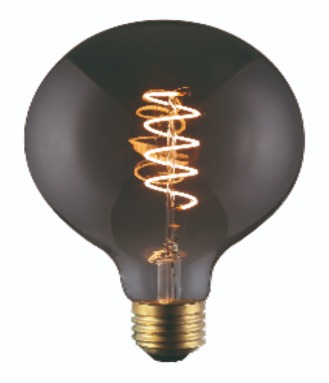 Een mooie globe lamp uit de Highlight collectie met een diameter van 125 mm. De lamp verbruikt maar 9W dus is erg zuinig. Het glas heeft een zwarte smoke kleur met daarin een spiraal, wat net een beetje extra geeft in uw armatuur dan bijv. een heldere lamp. Met 2200K en 350 lumen geeft de lamp zacht licht af. Bovendien is de lamp ook nog eens dimbaar, dus pas het licht naar wens aan.