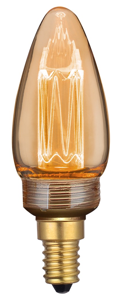Een mooie ledlamp uit de Freelight collectie met een prachtige rechte kooldraad in kaarsvorm. Deze lamp mag door zijn uiterlijk zeker gezien worden met het gouden glas en is daarom erg leuk in open armaturen. De lamp is dimbaar via de schakelaar in 3 standen. Zo kunt u het licht toch aanpassen zonder ingewikkeld installatiewerk van een dimmer. De lamp heeft ook een handige memory functie wat inhoudt dat de lamp onthoud in welke stand deze wordt uitgeschakeld en deze bij het inschakelen weer in die stand zal beginnen. De lamp heeft een hoogte van 10,5 cm en een diameter van 3,5 cm.