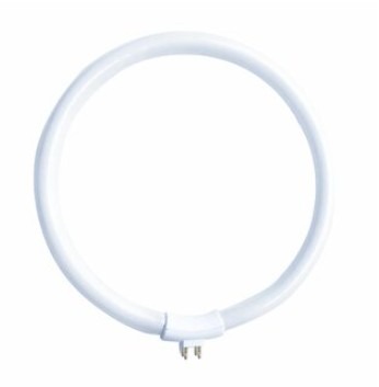 Een traditionele spaarlamp in ringvorm T4. De buis heeft een G10q fitting en vermogen van 22W. De lichtkleur van de lamp is koel wit daglicht van 6500K.