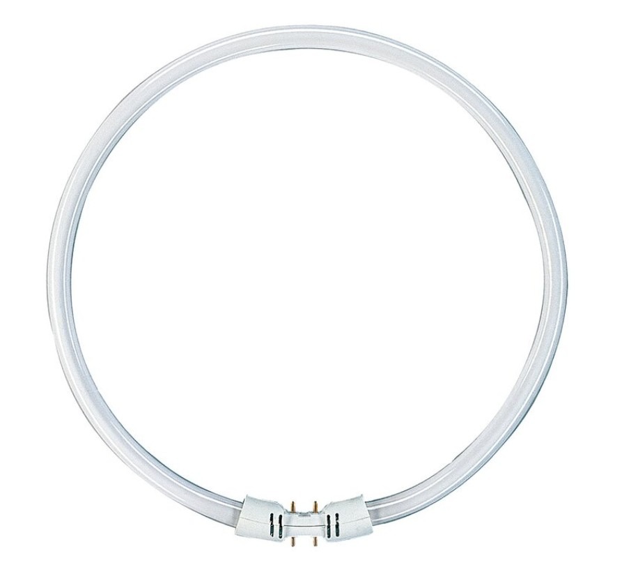 Een traditionele spaarlamp in ringvorm T5. De buis heeft een 2GX13 fitting en vermogen van 22W. De lichtkleur van de lamp is warm wit licht van 3000K.