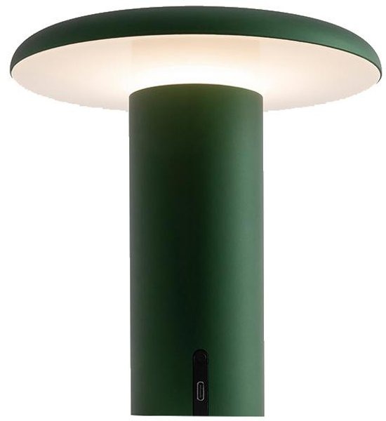 Een prachtige en functionele tafellamp van Artemide, want deze Takku is draadloos en kan je dus overal mee naartoe nemen. Zo heb je het licht daar waar je het nodig hebt. Binnen de Takku serie zijn diverse kleuren en het betreft hier een mooie diepgroene kleur. Artemide staat bekend om zijn moderne designlampen en ook het ontwerp van de Takku is er weer een om over naar huis te schrijven. Door de kap wordt het licht mooi via de onderkant verspreid zodat het niet direct verblind. De lamp heeft een zuinige led lichtbron van 2,5W en een warme kleur van 3000K. Je laadt de lamp op met de meegeleverde USB-kabel (4 uur tot volledig opgeladen) en zodra de lamp is opgeladen meenemen maar en gebruiken. De gebruiksduur afhankelijk van de lichtstand zit tussen de 5 en 20 uur. Er zit een aan-/uitknop op de lamp zelf en daarmee kan je de lamp ook nog eens in 3 in standen dimmen, handig als je net wat meer of minder licht nodig hebt. De lamp is alleen geschikt voor binnen gebruik.