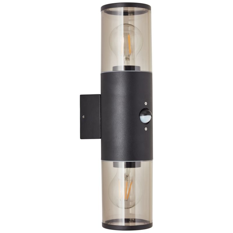 Een wandlamp uit de collectie van het merk Brilliant die mooi staat in de tuin bij een deur of aan een tuinhek. De lamp is gemaakt van aluminium en kunststof en heeft een mat zwarte kleur. De lamp wordt geleverd exclusief lichtbronnen en heeft twee E27 fittingen die geschikt zijn voor maximaal 2x 20 watt. Deze lamp kan goed geplaatst worden in de tuin dankzij de IP44 waarde (splash-proof). Tevens heeft de lamp een handige geïntegreerde bewegingsmelder voor direct goed zicht in het donker.