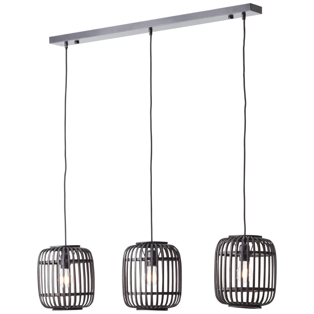 Een hanglamp met een landelijke look uit de collectie van het merk Brilliant. De lamp is gemaakt van metaal en rotan en heeft een donkere houtkleur met zwart. De lamp wordt geleverd exclusief lichtbronnen met een E27 fittingen en geschikt voor max. 3x 60W. Deze lamp kan goed geplaatst worden in de eetkamer boven de eettafel. De hoogte kan worden ingesteld door de kabel in te korten.