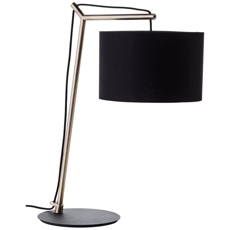 Een opvallende tafellamp uit de collectie van het merk Brilliant. De lamp is gemaakt van metaal en textiel en heeft een mat zwarte kleur met een geborstelde messing body. De lamp wordt geleverd exclusief lichtbron met een E14 fitting en is geschikt voor max. 7 watt (LED). Deze lamp kan goed geplaatst worden op een bijzettafel/ venster of bijvoorbeeld in de slaapkamer op een nachtkastje. De lamp heeft een praktische schakelaar in het snoer verwerkt.