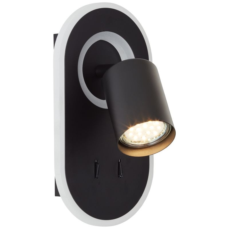 Een mooie wandlamp uit de collectie van het merk Brilliant gemaakt van metaal en kunststof in een zwarte kleur. De lamp heeft een mooie moderne look en kan overal toegepast worden. De lamp wordt geleverd inclusief geïntegreerde LED lichtbron die een wattage heeft van 9,5W. Deze lamp kan goed geplaatst worden in de hal, slaapkamer of woonkamer. De lamp heeft een draaibare kop en hierdoor kunnen ruimtes goed gericht verlicht worden. De lamp kan zowel op het plafond of aan de wand bevestigd worden. De lamp is apart schakelbaar met twee tuimelschakelaars (de spotkop en het achterplaatje).