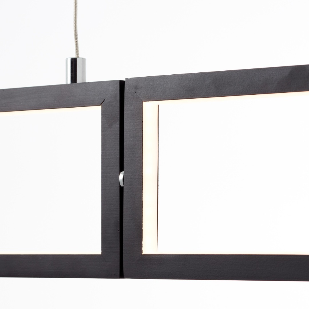 Een hanglamp met moderne uitstraling uit de collectie van het merk Brilliant. De lamp is gemaakt van metaal en kunststof en heeft een zwarte kleur. De lamp wordt geleverd inlusief 3 LED lichtbronnen van 11,3 watt per lichtbron. Deze lamp kan goed geplaatst worden in de eetkamer boven de eettafel. De hoogte van deze lamp kan worden ingesteld tijdens installatie. De lamp is dimbaar doormiddel van standen met exclusieve externe dimmer. U kunt de aparte delen van de lamp draaien zodat u het licht kunt schijnen naar wens.