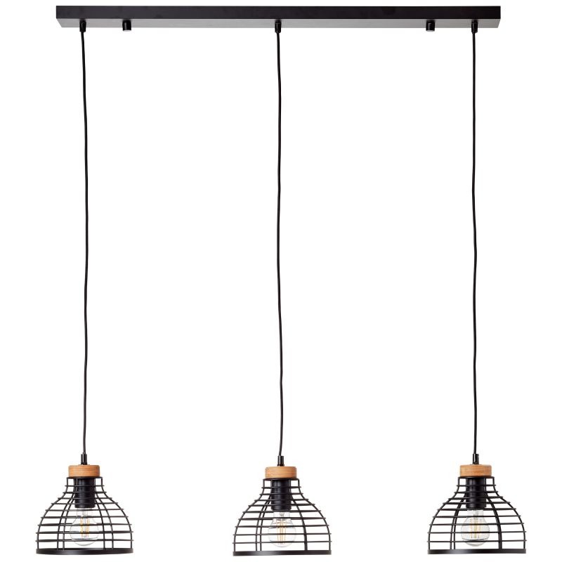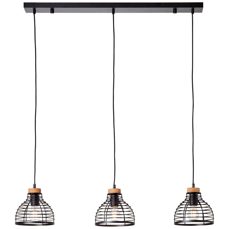 Een mooie hanglamp uit de collectie van het merk Brilliant gemaakt van metaal en hout in de kleur zwart en met houtkleurige accenten. Het hout wat gebruikt is voor deze lamp is FSC-gecertificeerd en komt uit milieubewust en duurzaam bosgebied. De lamp wordt geleverd exclusief lichtbronnen met E27 fittingen en is geschikt voor max. 3x 52 watt. Deze lamp kan goed geplaatst worden in verschillende ruimtes, bijvoorbeeld in eetkamer boven de eettafel. De lamp heeft een mooie uitstraling wat een unieke look en veel sfeer geeft in huis, in bijvoorbeeld een landelijk of industrieël interieur.