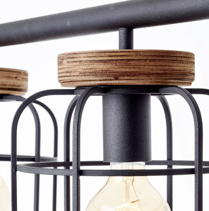 Een mooie hanglamp uit de collectie van het merk Brilliant met een industriële look. De lamp is gemaakt van metaal en hout en heeft een zwarte staal kleur met een houtkleur. De lamp wordt geleverd exclusief lichtbronnen met E27 fittingen en is geschikt voor max. 4x 40 watt. Deze lamp kan goed geplaatst worden in de eetkamer boven de eettafel. De lamp heeft een stoere uitstraling en is een echte blikvanger in het interieur.