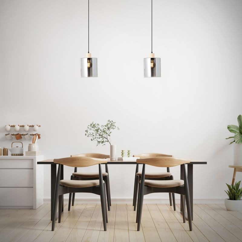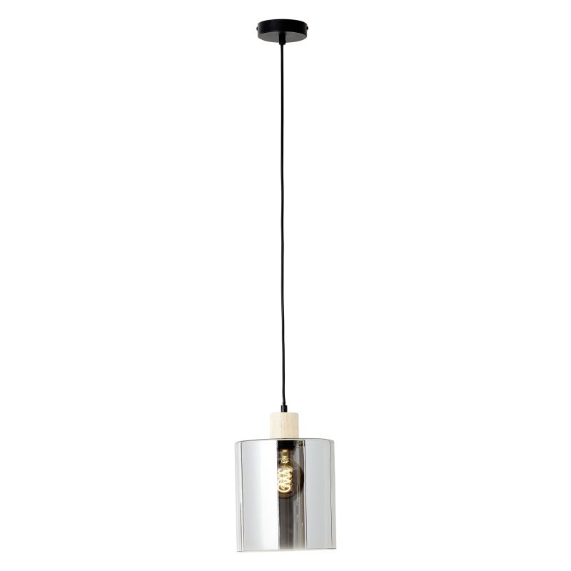 Een hanglamp met een moderne look uit de collectie van het merk Brilliant. De lamp is gemaakt van metaal, glas en hout en heeft een zwarte kleur met een rookglas en hout accent. De lamp wordt geleverd exclusief lichtbron met E27 fitting en geschikt voor max. 1x 40W. Deze lamp kan goed geplaatst worden in de eetkamer boven een eettafel of in de woonkamer. Het hout element geeft een natuurlijk-puristische en warme uitstraling aan het interieur. De combinatie van metaal en hout geeft een mooie modern-landelijke stijl wat goed staat in vele soorten interieur.