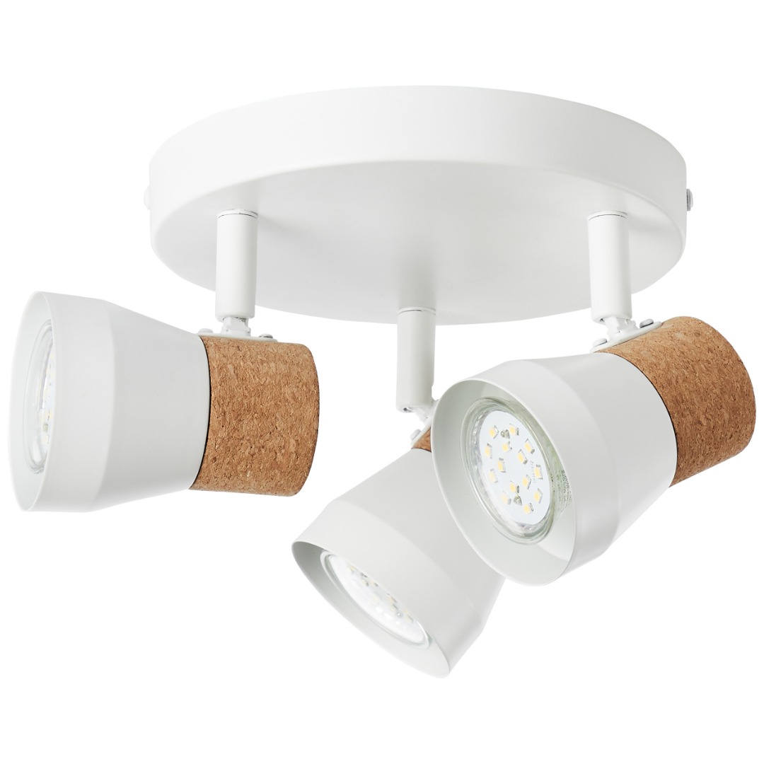 Een opbouwspot met landelijke uitstraling uit de collectie van het merk Brilliant. De lamp is gemaakt van metaal en kurk en heeft een mat witte kleur met een bruin accent. De lamp heeft richtbare spotkoppen en wordt geleverd exclusief lichtbronnen geschikt voor max. 3x 10 watt. Deze lamp kan goed geplaatst worden in de hal, woonkamer of slaapkamer. Met deze opbouwspot kan het licht mooi gericht worden naar de gewenste plek.