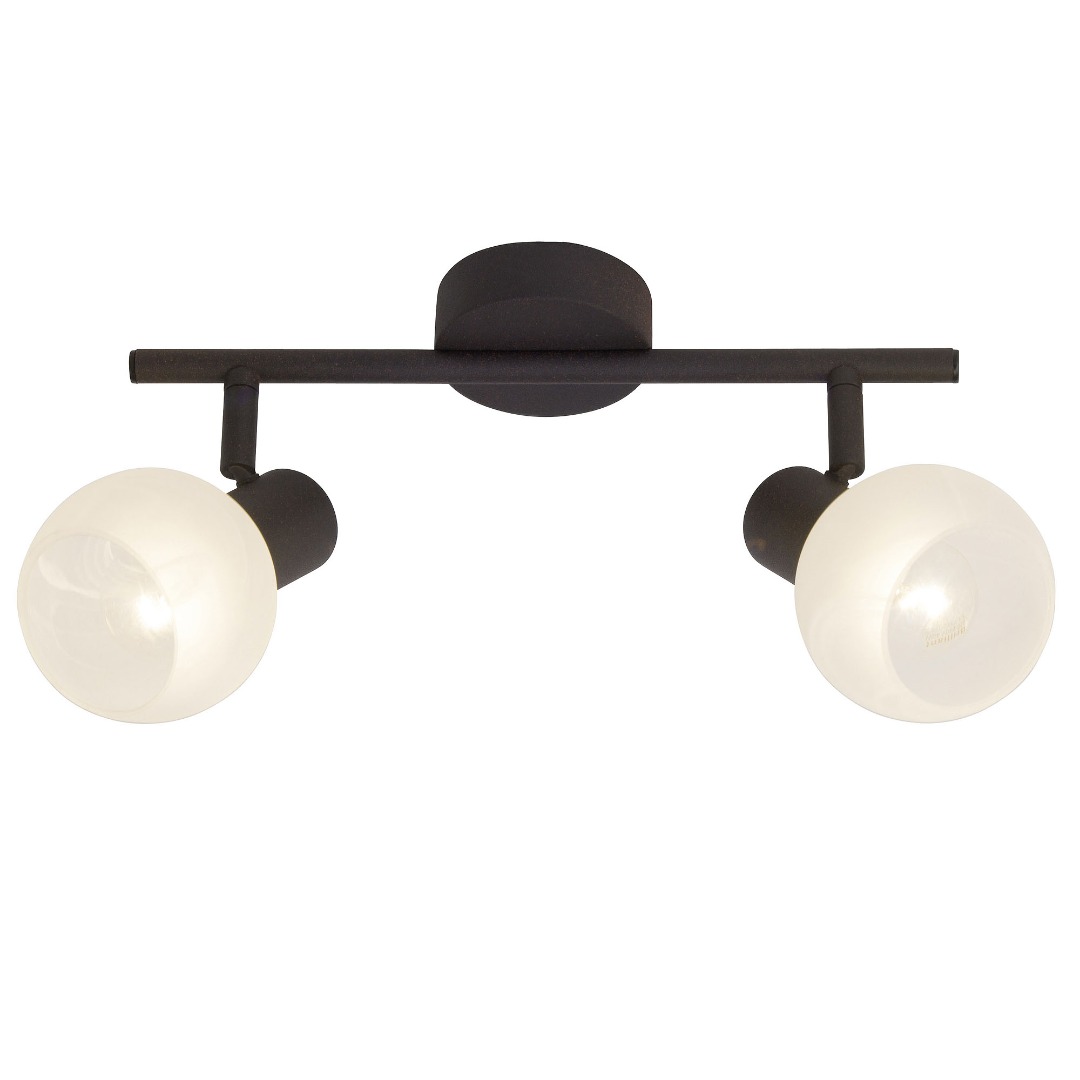 Een opbouwspot met modern klassieke uitstraling uit de collectie van het merk Brilliant. De lamp is gemaakt van metaal en glas en heeft een albast witte kleur met bruinkleurige behuizing. De lamp heeft een richtbare spotkoppen en wordt geleverd exclusief lichtbronnen geschikt voor max. 2x 40W. Deze lamp kan goed geplaatst worden in de hal, woonkamer of slaapkamer.