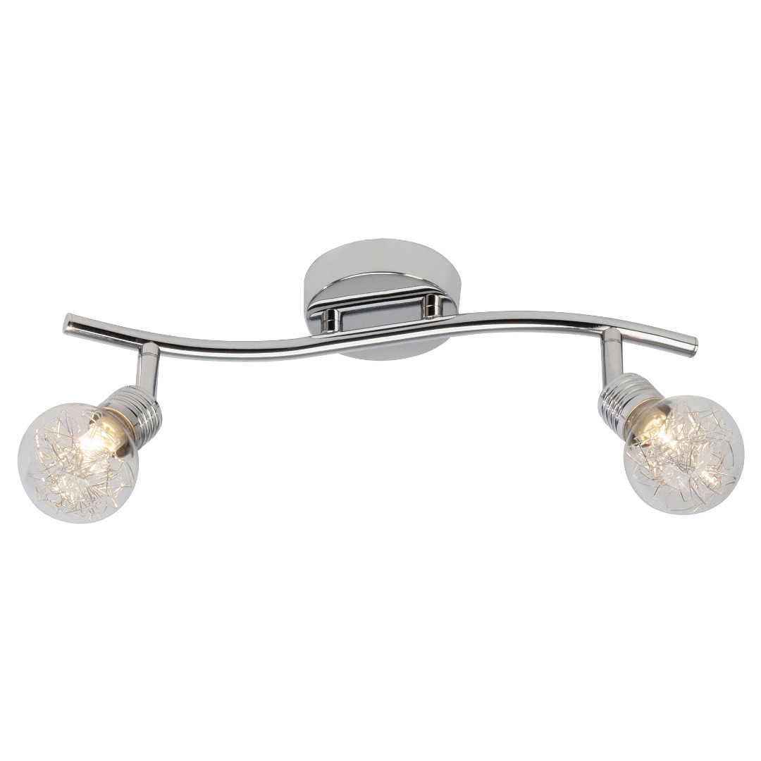 Een opbouwspot met een moderne uitstraling en een leuk bijzonder effect door het draadmotief in de lamp zelf. De lamp is gemaakt van metaal en glas en heeft een chromen kleur. De lamp heeft richtbare spotkoppen en wordt geleverd exclusief lichtbronnen met G9 fittingen en geschikt voor max. 2x 28W. Deze lamp kan goed geplaatst worden in de hal, woonkamer of slaapkamer.
