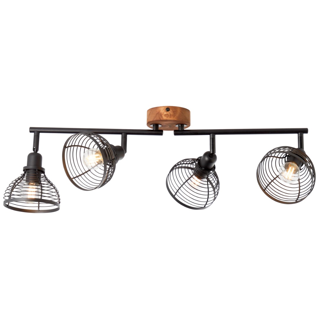 Een opbouwspot met een industriële uitstraling uit de collectie van het merk Brilliant. De lamp is gemaakt van metaal en hout en heeft een zwarte met een hout kleur. De lamp heeft richtbare spotkoppen en wordt geleverd exclusief E14 lichtbronnen geschikt voor max. 4x 40W. Deze lamp kan goed geplaatst worden in de woonkamer of slaapkamer. Met deze opbouwspot kan het licht mooi gericht worden naar de gewenste plek.