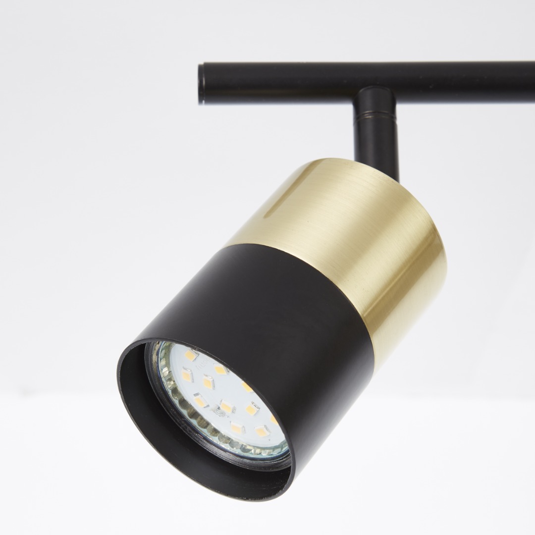 Een opvallende spotlamp met retro - moderne uitstraling uit de collectie van het merk Brilliant. De lamp is gemaakt van metaal en is zwart gecombineerd met een geborstelde messing kleur. De lamp heeft een richtbare spotkoppen en wordt geleverd exclusief GU10 lichtbronnen geschikt voor een maximaal wattage van 2x 5W. Deze lamp kan goed geplaatst worden in de hal, woonkamer of slaapkamer. Met deze opbouwspot kan het licht mooi gericht worden naar de gewenste plek.