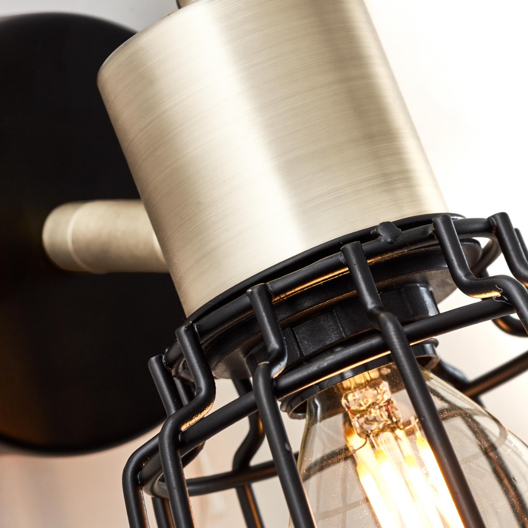 Een 1-licht opbouwspot/ wandspot met een industriële uitstraling uit de collectie van het merk Brilliant. De lamp is gemaakt van metaal en heeft een mat zwarte kleur met een geborsteld messing accent. De lamp heeft een richtbare spotkop en wordt geleverd exclusief lichtbron geschikt voor max. 40 watt. Deze lamp kan goed geplaatst worden in de hal, woonkamer of slaapkamer. Met deze opbouwspot kan het licht mooi gericht worden naar de gewenste plek.
