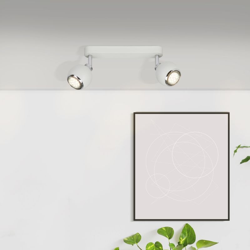 Een mooie stijlvolle opbouwspot uit de collectie van Brilliant die eigenlijk overal kan worden toegepast. De spot is gemaakt van metaal en heeft een witte kleur met een chromen accentje. De spot wordt geleverd inclusief LED lampen die een wattage hebben van 2x 3W (eventueel vervangbaar). Door de draaibare koppen is het gemakkelijk om bepaalde plekken of objecten gericht te kunnen verlichten. De lamp kan gemonteerd worden op zowel de wand als het plafond. Met dit tijdloze design past de lamp in elke woonruimte.