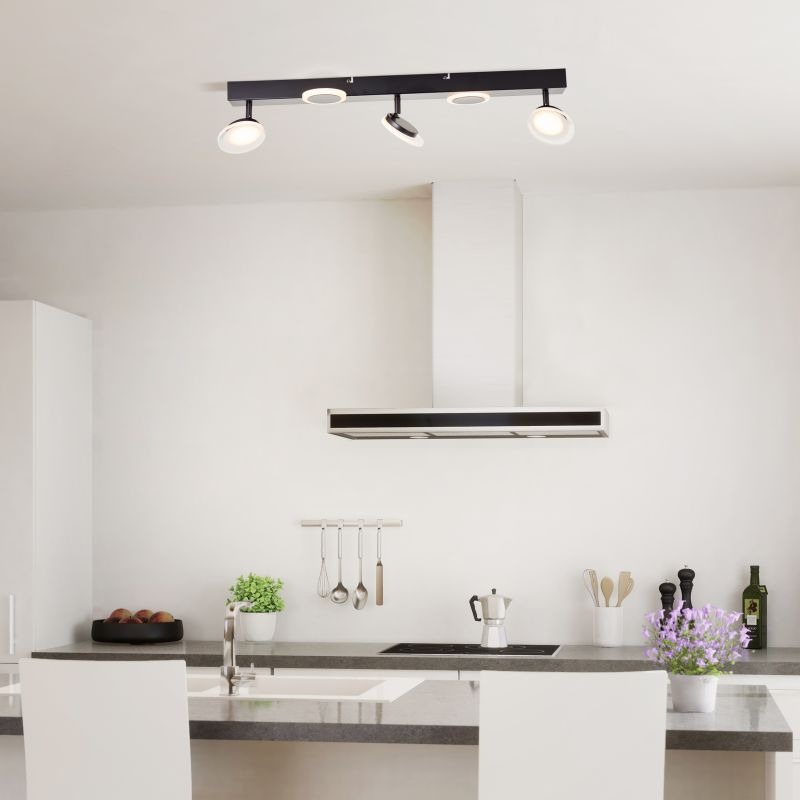 Een mooie opbouwspot uit de collectie van het merk Brilliant gemaakt van metaal en kunststof in een zwarte kleur. De lamp wordt geleverd inclusief geïntegreerde LED lichtbronnen met een wattage van 22W. Deze lamp kan goed geplaatst worden in verschillende ruimtes, bijvoorbeeld de hal, woonkamer of slaapkamer. Deze spot heeft een strakke moderne uitstraling en is energiezuinig vanwege de LED-technologie. De spotkoppen kunnen gedraaid worden in de gewenste richting. De spot kan zowel op de muur als aan het plafond en heeft een tijdloos design.