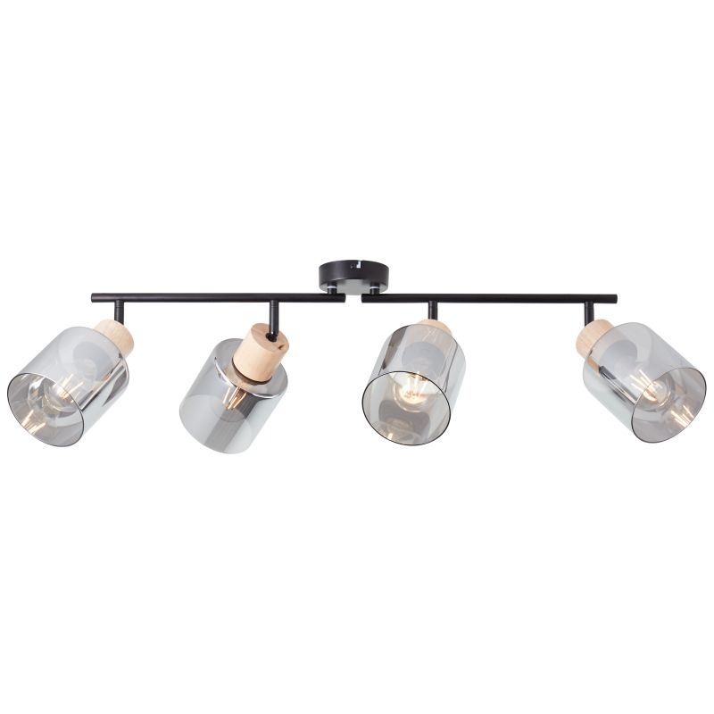 Een spotlamp met een moderne look uit de collectie van het merk Brilliant. De lamp is gemaakt van metaal, glas en hout en heeft een zwarte kleur met een rookglas en hout accent. De lamp wordt geleverd exclusief lichtbronnen met E27 fittingen en geschikt voor max. 4x 40W. Deze lamp kan goed geplaatst worden in de hal, woonkamer of slaapkamer. Het hout element geeft een natuurlijk-puristische en warme uitstraling aan het interieur. De kop van de lamp is draaibaar voor optimale verlichting. De combinatie van metaal en hout geeft een mooie modern-landelijke stijl wat goed staat in vele soorten interieur.