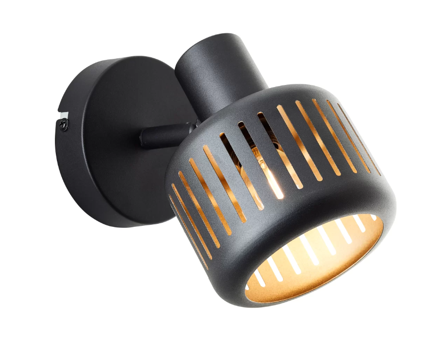 Een leuke spotlamp met een retro-moderne look uit de collectie van het merk Brilliant. De lamp is gemaakt van metaal en aluminium en heeft een interessante zwart-gouden kleur. De lamp wordt geleverd exclusief lichtbron met een E14 fitting en geschikt voor max. 28W. Deze lamp kan goed geplaatst worden in verschillende ruimtes zoals hal, woonkamer en slaapkamer.