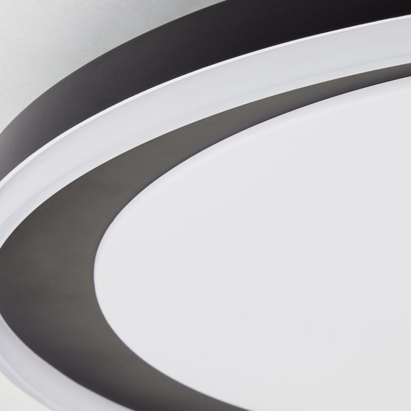 Een mooie plafondlamp uit de collectie van het merk Brilliant gemaakt van metaal en kunststof in een chique zwarte kleur. De lamp heeft een mooie stijlvolle uitstraling en staat goed in de hal, slaapkamer of woonkamer. De lamp wordt geleverd inclusief geïntegreerde LED lichtbron die een wattage heeft van 22W. De lamp is prachtig decoratief item die zorgt voor een fijne sfeer met aangenaam licht. De lamp zou ook als wandlamp gebruikt kunnen worden.