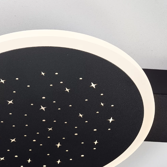 Een mooie plafondlamp uit de collectie van het merk Brilliant gemaakt van metaal en plastic in een zwarte kleur met een interessant sterren-effect. De lamp heeft een mooie stijlvolle uitstraling en staat goed in de hal, slaapkamer of woonkamer. De lamp wordt geleverd inclusief geïntegreerde LED lichtbron die een wattage heeft van 26W. De lamp is prachtig decoratief item die zorgt voor een fijne sfeer met aangenaam licht in ieder interieur.