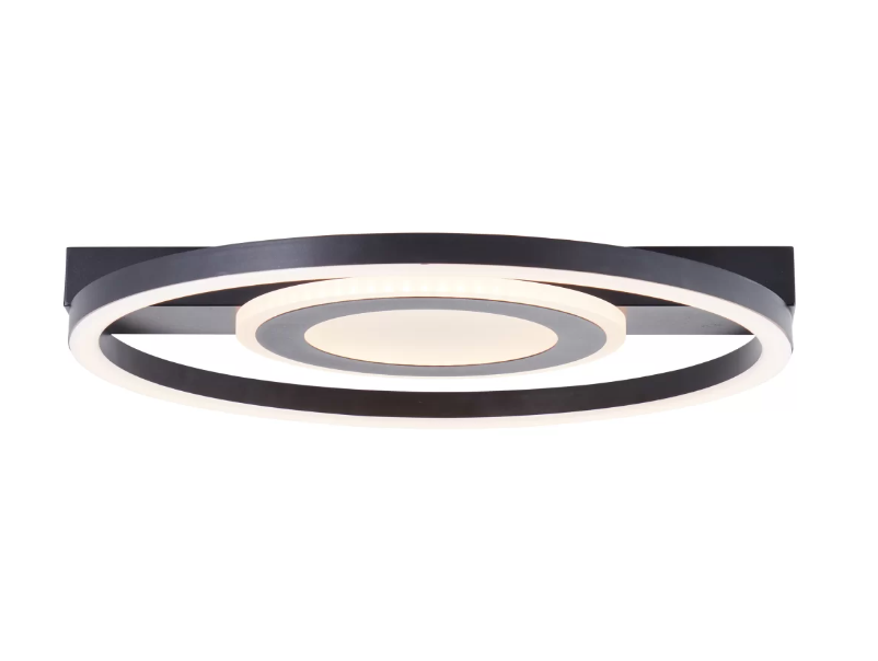 Een moderne plafondlamp uit de collectie van het merk Brilliant. De lamp is gemaakt van metaal en plastic en heeft een zwarte kleur. De lamp wordt geleverd inclusief ingebouwde LED lamp die een wattage heeft van 22 watt. Deze lamp kan goed geplaatst worden in de hal, woonkamer of slaapkamer. De lamp heeft een leuke look door de verschillende elementen en stijlvolle uitstraling.