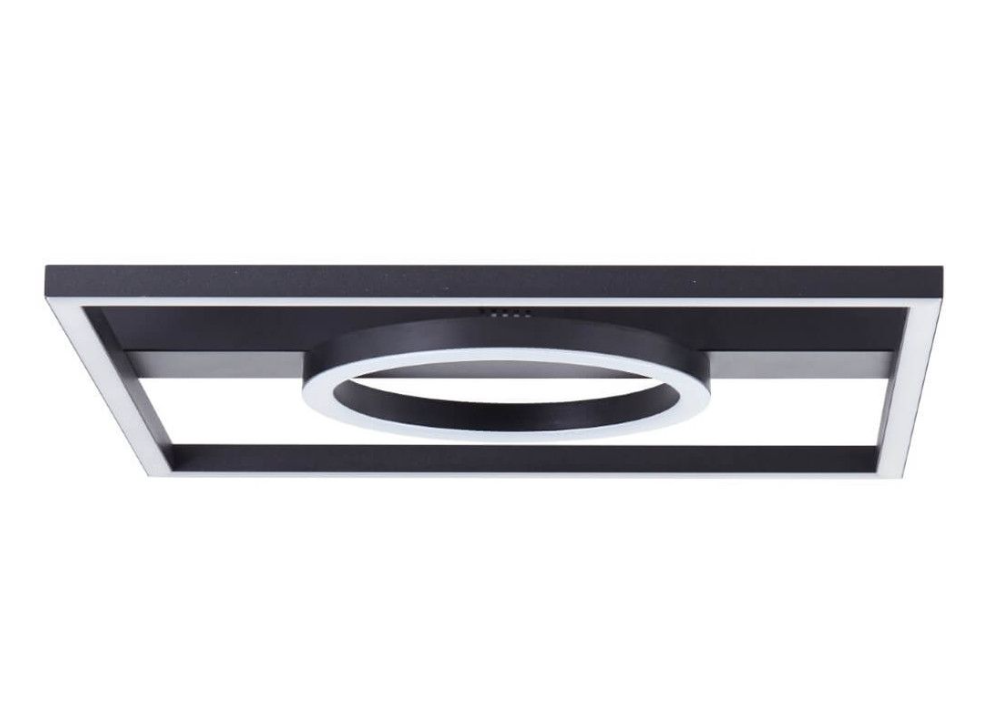 Een moderne plafondlamp uit de collectie van het merk Brilliant. De lamp is gemaakt van metaal en plastic en heeft een zwarte kleur. De lamp wordt geleverd inclusief ingebouwde LED lamp die een wattage heeft van 24 watt. Deze lamp kan goed geplaatst worden in de hal, woonkamer of slaapkamer. De lamp heeft een leuke look door de verschillende elementen en stijlvolle uitstraling.