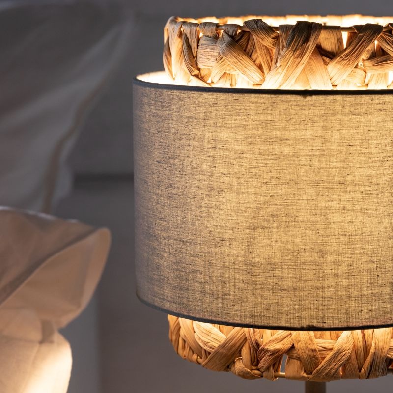 Een opvallende tafellamp uit de collectie van het merk Brilliant. De lamp is gemaakt van textiel, metaal en waterhyacint heeft een grijs met beige kleur. De lamp wordt geleverd exclusief lichtbron met een E27 fitting en is geschikt voor max. 60 watt. Deze lamp kan goed geplaatst worden op een bijzettafel/ venster of bijvoorbeeld in de slaapkamer op een nachtkastje. De lamp heeft een praktische schakelaar in het snoer verwerkt.