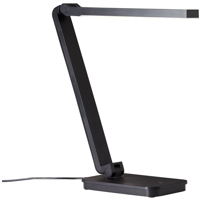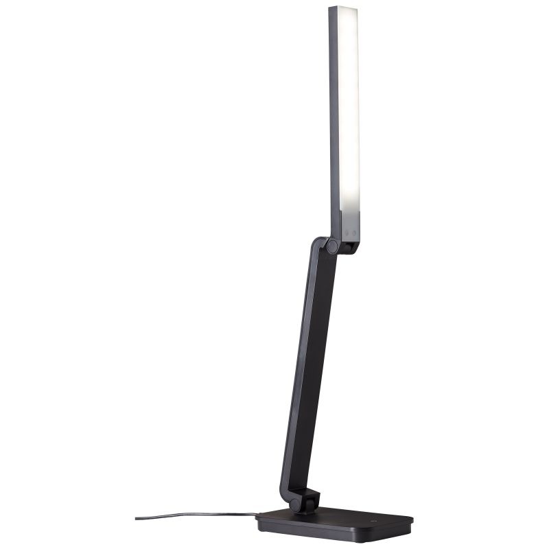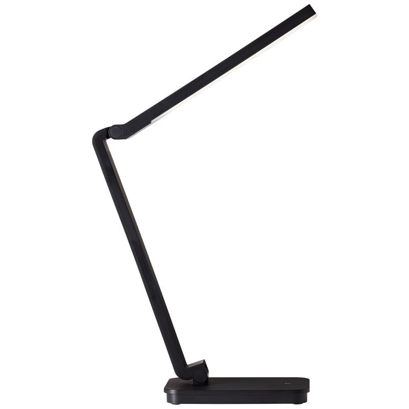 Een mooie bureaulamp uit de collectie van het merk Brilliant met een simplistische moderne look. De lamp is gemaakt van kunststof heeft een compleet zwarte kleur. De lamp wordt geleverd inclusief geïntegreerde LED lamp met een wattage van 5W. Deze lamp kan goed geplaatst worden op een bureau in kantoorruimte of in de woonkamer. De tafellamp heeft een handige touchdimmer waarmee traploos kan worden gedimd. De kop kan handig gericht worden en is hierdoor ook goed toepasbaar als leeslamp. De lamp kan ook worden aangesloten via een USB-poort.