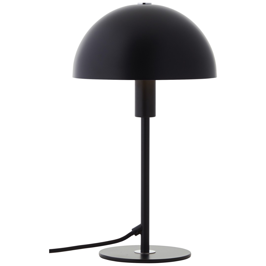 Een prachtige tafellamp in een moderne, zwarte kleur met kleine chroomkleurige details. Echt een plaatje om te zien. De lamp heeft een handige snoerschakelaar om in-/ en uit te schakelen. Er zit een E14 fitting in geschikt voor een lichtbron van max. 20W. De lamp heeft een hoogte van 35,5 cm en de kap een diameter van 20,3 cm. De kap verspreidt mooi het licht naar beneden en zorgt dat je niet direct in de lichtbron kijkt.