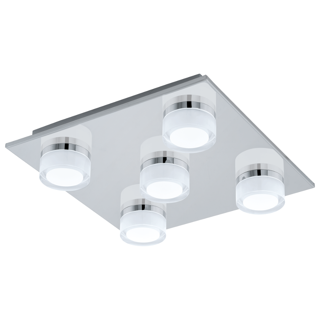 Deze plafondlamp komt uit de de badkamer collectie van het merk Eglo. De lamp is gemaakt van staal en kunststof en heeft de kleur chroom. De lamp wordt inclusief LED lichtbron geleverd met een wattage van 5x 7,2W. De moderne lamp heeft de beschermingsgraad IP44 waardoor deze lamp goed in de badkamer kan worden geplaatst.