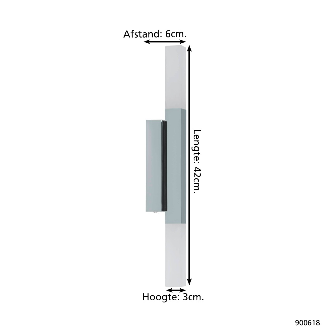 Een mooie chique wandlamp uit de wandlampen collectie van het merk Eglo die geschikt is voor in de badkamer. De lamp is gemaakt van aluminium, staal en kunststof in de kleur chroom en satijn. De lamp wordt geleverd inclusief LED lichtbronnen met een wattage van 2x 5,5W. De lamp heeft een moderne uitstraling en staat mooi in iedere soort badkamer, bijvoorbeeld goed te plaatsen boven een spiegel. De lamp heeft een beschermingswaarde van IP44 en straalt een warm witte kleur uit.