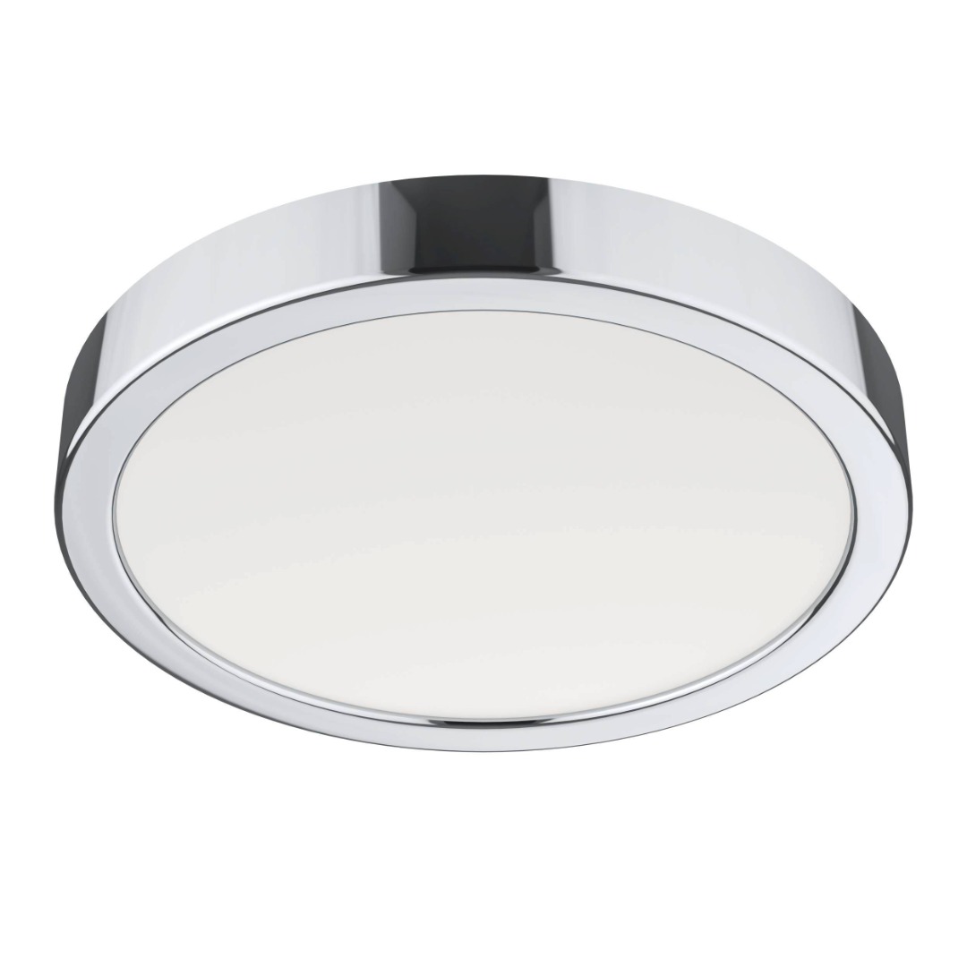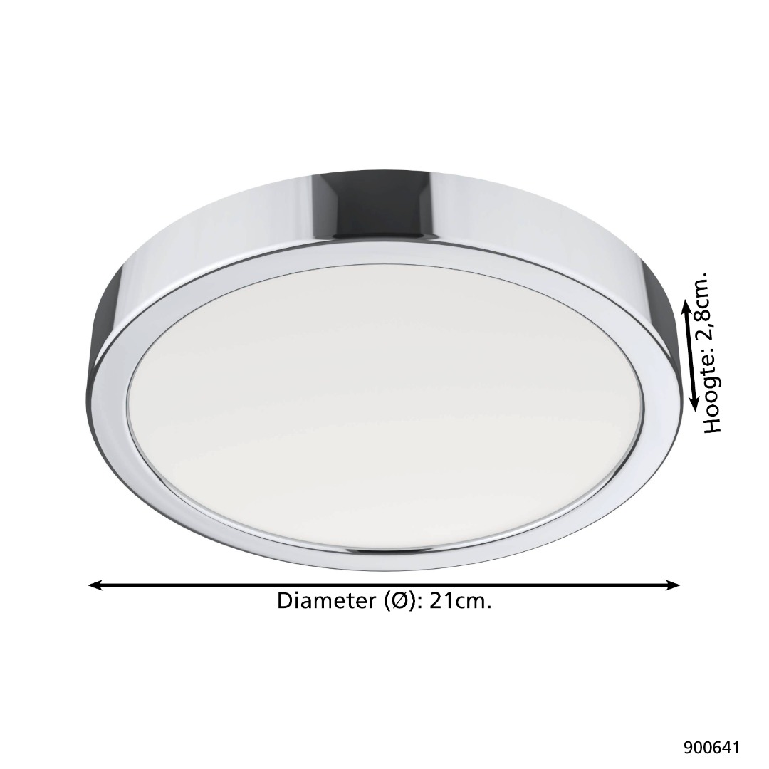Een plafondlamp uit de collectie van Eglo met een moderne look die geschikt is voor in de badkamer vanwege de IP44 waarde. De lamp is gemaakt van staal en kunststof in een chroom kleur met wit. Deze lamp heeft een wattage van 17W met een ingebouwde LED lichtbron.