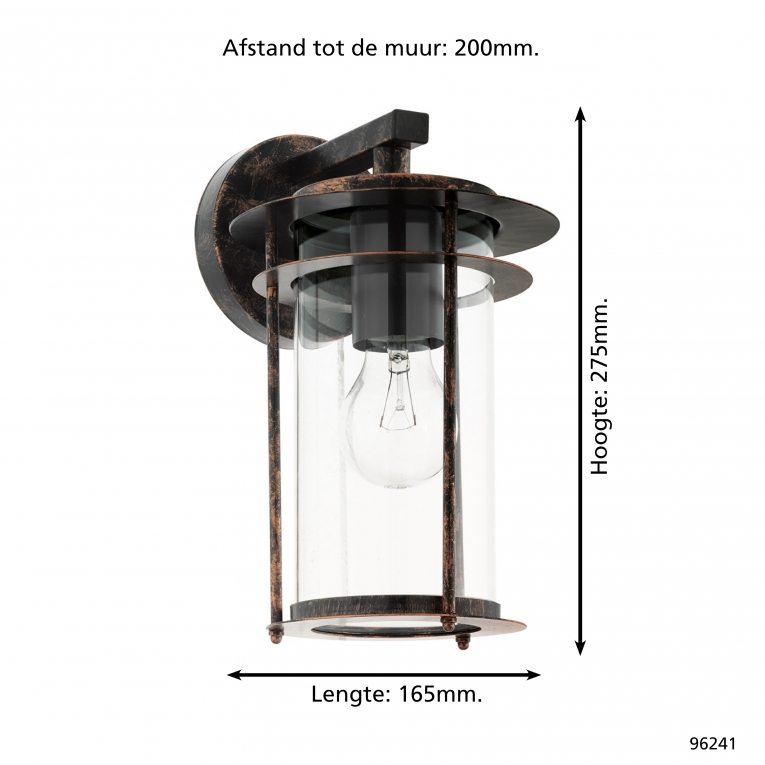 Deze wandlamp van Eglo komt uit de nieuwste Outdoor collectie. De wandlamp kan goed geplaatst worden in uw tuin, bijvoorbeeld naast een buitendeur. De lamp is gemaakt van gegalvaniseerd staal en heeft een koper antieke kleur en een soort geblazen bellen in het glas. Geef uw buitenomgeving een gave uitstraling met deze wandlamp.