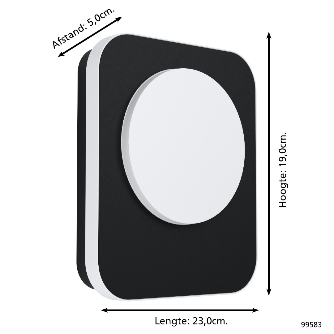 Een simplistiche, maar moderne wandlamp. De lamp is zwart van kleur en heeft een leuk effect door het kunststof witte ronde plaatje in het midden van de lamp. De lamp heeft een geïntegreerde ledlamp van 9W welke mooi warm wit licht schijnt (3000K). De lamp is ook beschikbaar met een bewegingssensor, dat is artikel 99584.