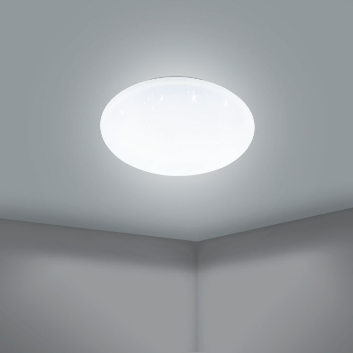 Een mooie chique plafondlamp van Eglo uit de Connect.Z collectie die een sparkling effect geeft wanneer hij aan staat. Dit leuke effect lijkt op sterren in de nacht. De lamp is gemaakt van staal en kunststof met kristaleffect in een witte kleur. De ingebouwde LED's hebben een wattage van 4x 4,8W en produceren een aangenaam licht wat kan worden aangepast tussen warm witneutraal wit en koel wit licht. De lamp kan worden gebruikt in combinatie met de AwoX HomeControl app, waarmee vele functies gebruikt kunnen worden zoals lichtsterkte aanpassen, timers instellen, aanwezigheidssimulaties instellen en nog veel meer. Het product werkt met Bluetooth en ZigBee 3.0, waarmee ook spraakbesturing mogelijk is (Alexa of Google Home). Ook is het mogelijk om de lamp met een afstandsbediening te besturen (niet inbegrepen). De lamp kan in vele ruimtes worden geplaatst zoals de hal, woonkamer of slaapkamer.