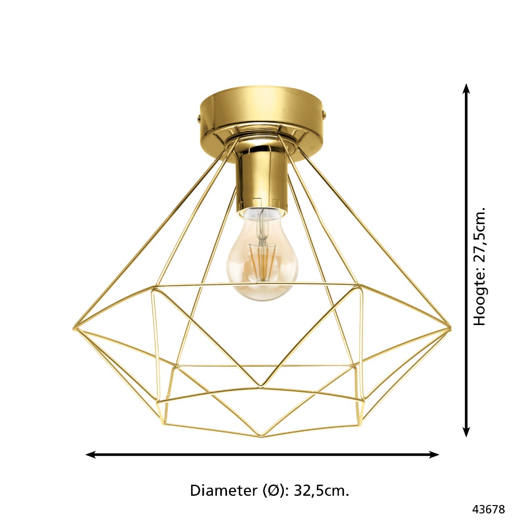 Een mooie plafondlamp uit de plafondlampen collectie van het merk Eglo. De lamp is gemaakt van staal in de kleur geborsteld geelkoper. De lamp wordt geleverd exclusief lichtbron geschikt voor een wattage van 60W. Deze lamp kan goed geplaatst worden in de hal, woonkamer of slaapkamer. Door de chique uitstraling met vintage- touch kan deze lamp in veel soorten interieur mooi tot zijn recht komen.