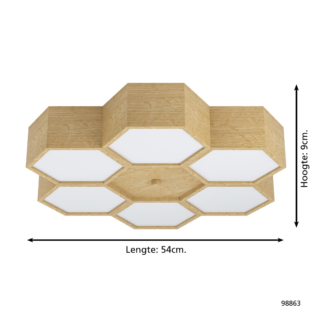 Een mooie plafondlamp uit de plafondlampen collectie van het merk Eglo. De lamp is gemaakt van staal en hout in de kleur bruin met wit. De lamp wordt geleverd exclusief E27 lichtbronnen geschikt voor max. 6x 9W. Deze lamp kan goed geplaatst worden in de woonkamer of slaapkamer. Door de unieke vorm en uitstraling is deze lamp een opvallende verschijning.