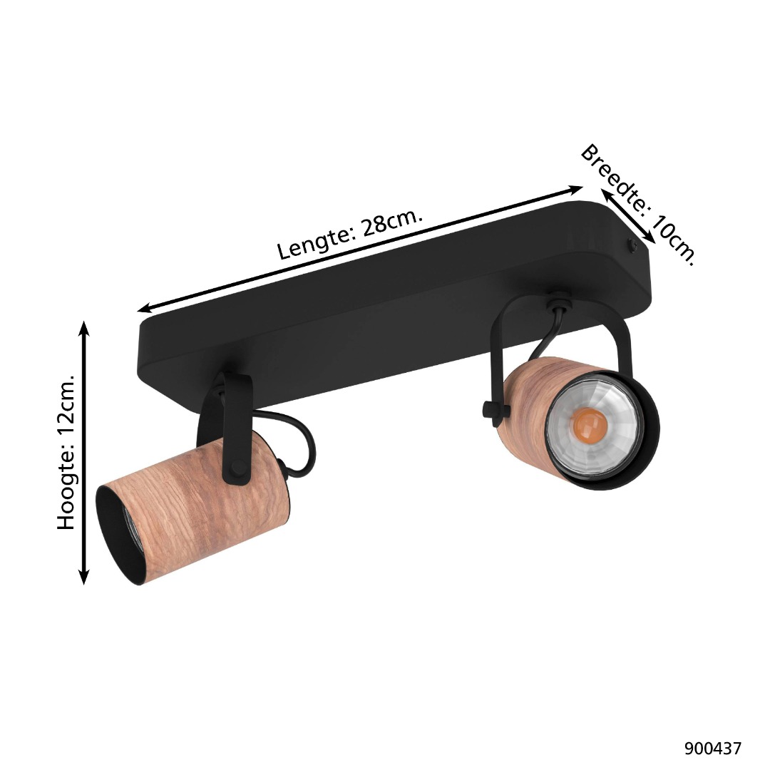 Deze opbouwspot komt uit de Opbouwspots collectie van het merk Eglo. Deze opbouwspot is gemaakt van staal en hout in de kleuren zwart en bruin. De lamp wordt inclusief LED lichtbronnen geleverd met wattages van 2x 3W en GU10 fittingen. De lamp heeft een moderne uitstraling en is zeer geschikt voor verschillende woonruimten zoals de hal, slaapkamer of woonkamer.