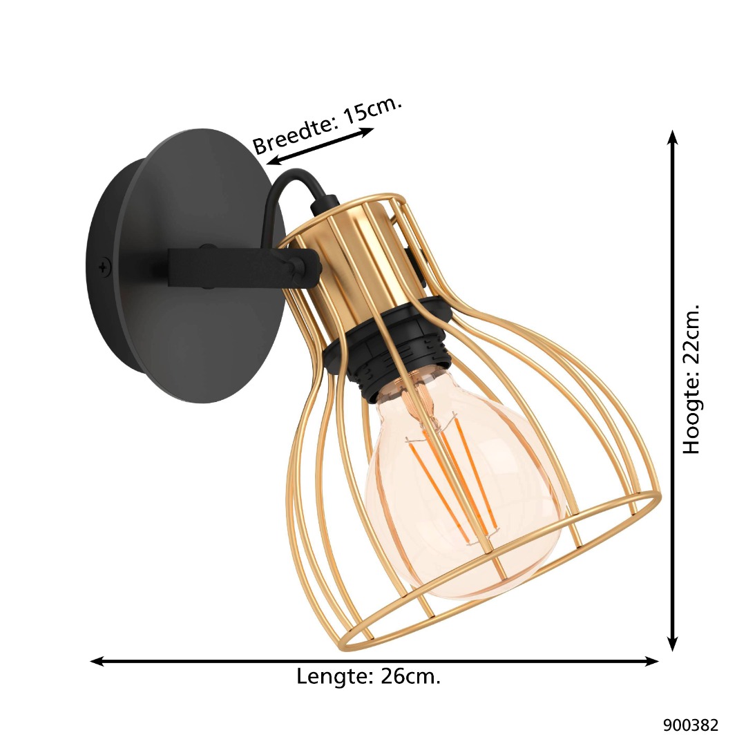 Deze opbouwspot komt uit de Opbouwspots collectie van het merk Eglo. Deze opbouwspot is gemaakt van staal en hout in de kleuren zwart en geborsteld messing. De lamp wordt exclusief lichtbron geleverd geschikt voor een wattage van 40W en een E27 fitting. De lamp heeft een moderne uitstraling en is zeer geschikt voor verschillende woonruimten zoals de hal, slaapkamer of woonkamer.