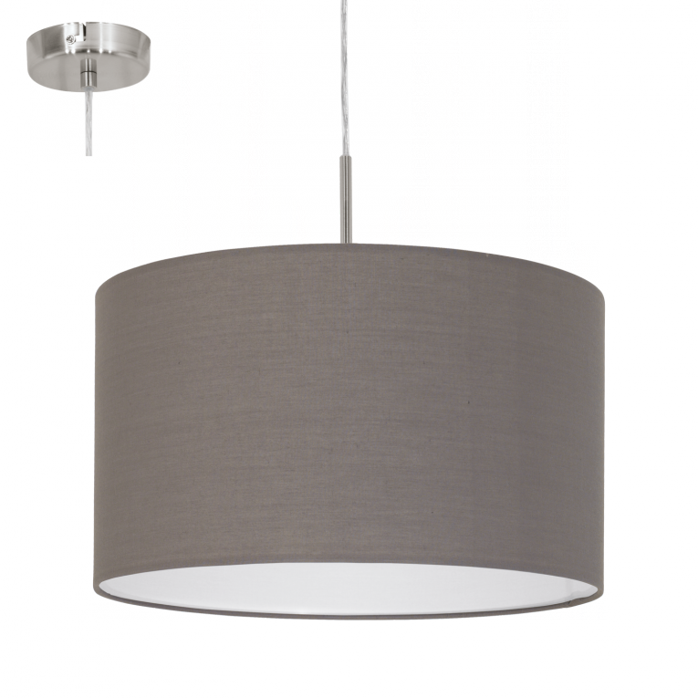 Een trendy hanglamp uit de textiellampen collectie van Eglo. De kap van de Pasteri is gemaakt van textiel en heeft de kleur antraciet-bruin. De behuizing van de lamp is nikkel-mat en is gemaakt van staal. De lamp heeft een E27-fitting en wordt exclusief lichtbron geleverd. De lamp is geschikt voor een max. wattage van 1x 60W. Verder komt de lamp goed tot zijn recht boven de eettafel of in de woonkamer.