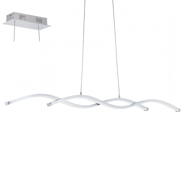 Een moderne hanglamp uit de lighting collectie van Eglo. De lamp is chroom en wit van kleur en gemaakt van staal, aluminium en kunststof. De lamp wordt inclusief LED lichtbron geleverd. De lamp is geschikt voor een max. wattage van 2x 9W. Deze lamp is een goed voorbeeld van een lamp die mooi in de woonkamer of boven een eettafel kan worden opgehangen.