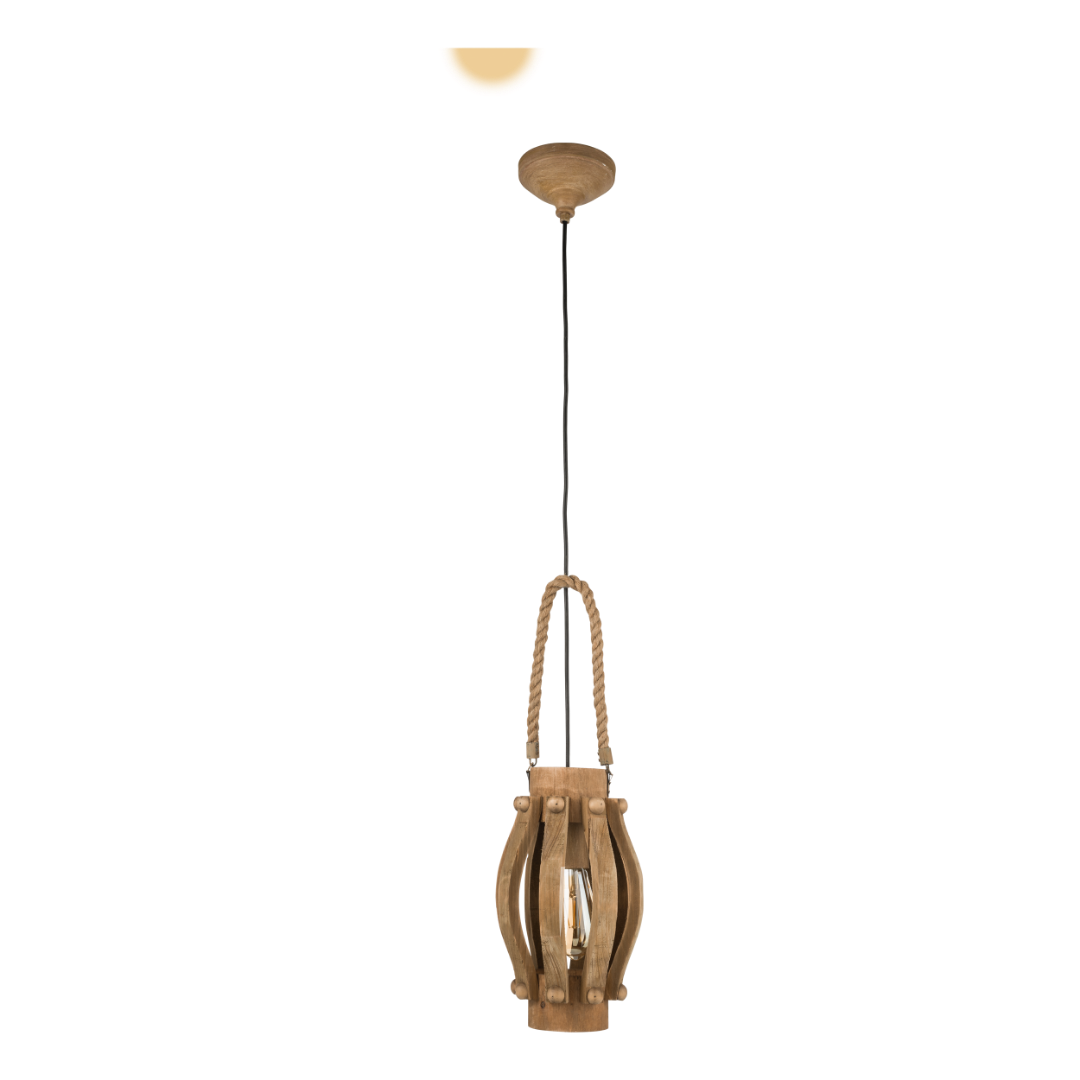Een mooie hanglamp uit de hanglampen collectie van Eglo. De lamp heeft een vintage uitstraling in een bruine kleur. De lamp wordt exclusief lichtbron geleverd en is geschikt voor een wattage van max. 1x 60W. De hanglamp is gemaakt van hout en staal. Deze lamp staat goed in de eetkamer, bijvoorbeeld boven de eettafel.
