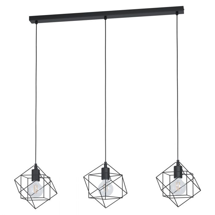 Een hanglamp met 3 lichtpunten uit de collectie van Eglo met een vintage uitstraling. De lamp is gemaakt van staal in de kleur zwart. Deze lamp is een mooi voorbeeld van een lamp die je in de eetkamer kan hangen boven een eettafel, maar ook zeker elders in de woonkamer met veel ruimte zeker niet misstaat. De lamp wordt exclusief lichtbron geleverd en is geschikt voor een wattage van max. 3x 60W.