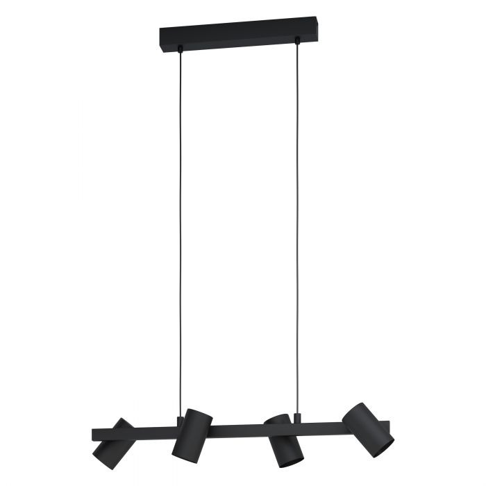 Een mooie Hanglamp met een strakke look uit de collectie van het merk Eglo. De lamp is gemaakt van zwart staal.  De lamp wordt exclusief lichtbron geleverd en heeft 4 keer een E14 fitting met een maximale wattage van 4x 25W. Deze lamp kan goed geplaatst worden in bijvoorbeeld een  woonkamer of eetkamer boven de eettafel of boven een kookeiland.  De lamp heeft dankzij de stale behuizing een industriële uitstraling. Iets wat tegenwoordig veel terugkomt in de moderne woonkamer.