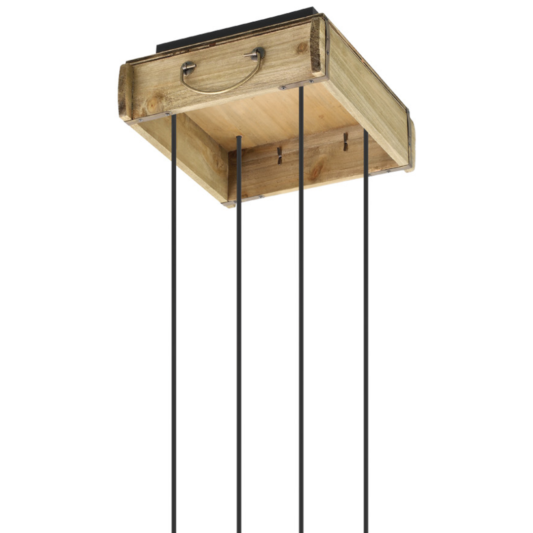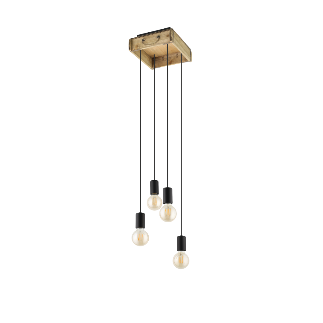 Een hanglamp uit de lighting collectie van Eglo met een landelijke uitstraling. De lamp is gemaakt van staal en hout met een zwarte en bruine kleur. De lamp heeft E27-fittingen en wordt exclusief lichtbronnen geleverd. Het is geschikt voor een max. wattage van 4x 40W. De lamp heeft een bijzondere vorm, waardoor het een mooie, unieke uitstraling geeft aan je huis. De lamp is een goed voorbeeld van een lamp die mooi boven de eettafel kan worden opgehangen maar ook zeker eldens in de woonkamer tot zijn recht kan komen.