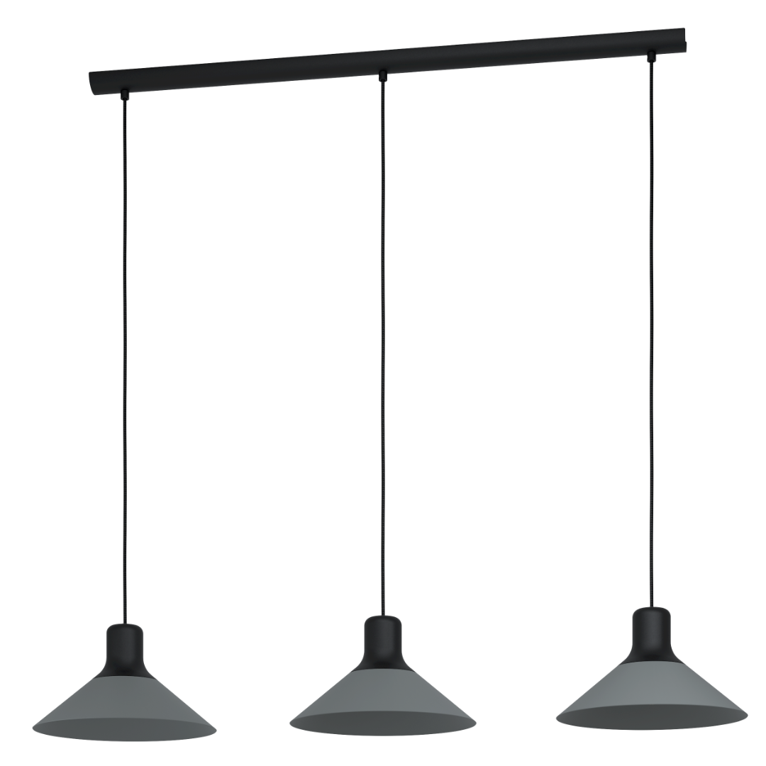 Een moderne hanglamp uit de lighting collectie van Eglo. De lamp is gemaakt van staal en heeft een zwarte met grijze kleur. De lamp heeft E27-fittingen en wordt exclusief lichtbronnen geleverd. Het is geschikt voor een max. wattage van 3x 28W. De lamp heeft een bijzondere vorm, waardoor het een mooie, unieke uitstraling geeft aan je huis. De lamp is een goed voorbeeld van een lamp die mooi boven de eettafel kan worden opgehangen.